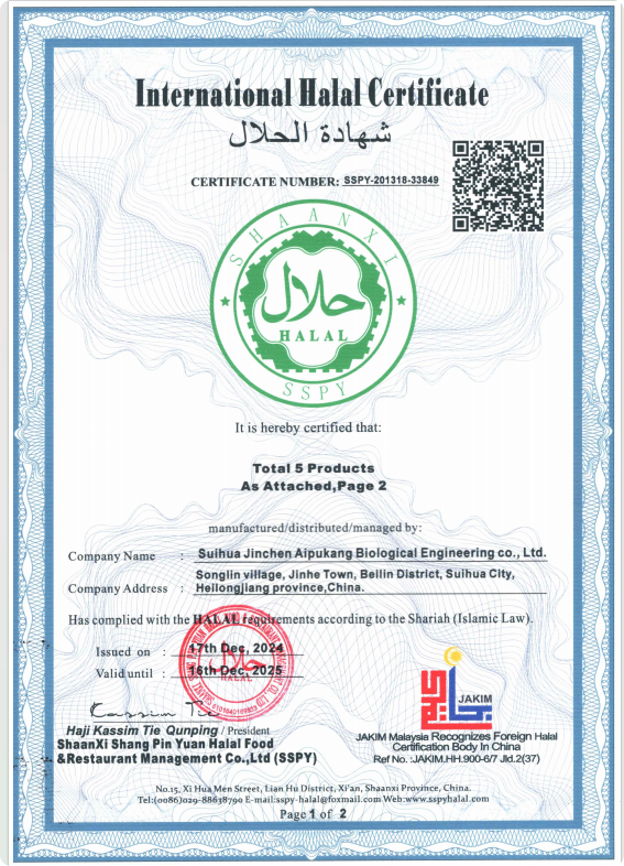 綏化金晨愛普康生物工程有限公司位于黑龍江省中南部地區的綏化市北林區,所處位置東經124度,北緯45度,位于松嫩平原的呼蘭河流域,“有寒地黑土,塞北江南”的美譽,是全國重要的商品糧基地,屬中溫帶大陸性季風氣候,四季分明,雨熱同期,冬季冰雪覆蓋,夏季降雨集中氣候溫熱濕潤。綏化金晨愛普康生物工程有限公司是一家專業從事健康養生產品研發(fā)、生產及銷售企業,公司占地總面積8000平方米,建筑面積5000平方米,公司周圍無任何污染源,是食品生產基地。公司生產車間潔凈度級別達到10萬級,同時擁有數十臺先進的生產設備及高科技檢驗儀器,從產品的原輔料、中間品、成品到銷售的全過程嚴格把關,使生產中每道工序都符合產品的高標準要求,從而保證了公司生產的每一袋產品合格,無質量缺陷。綏化金晨愛普康生物工程有限公司率先采用了企業資源ERP管理系統,肩負著養生產業的重要課題,同時又是江蘇省國家藥用植物重點實驗中心科研成果轉化的生產試驗基地,公司核心成員均為本科以上學歷。生產的產品有近五十個品種的代用茶產品,公司先后通過HALAL國際認證,編號為SSPY-201318-33849;ISO9001質量管理體系認證編號為XBH···